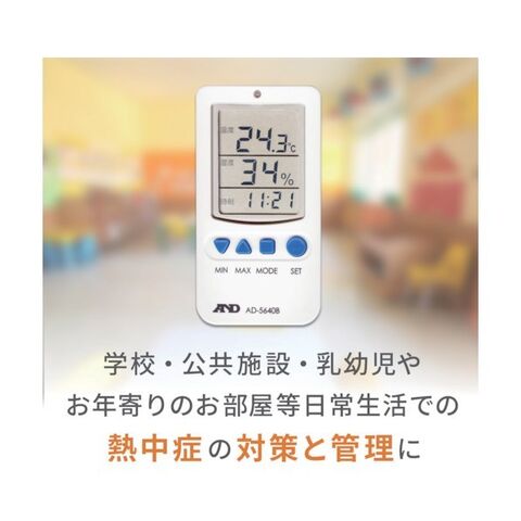 A&D 温度湿度アラーム付き温湿度計 240 x 110 x 20 mm AD-5640B 1点