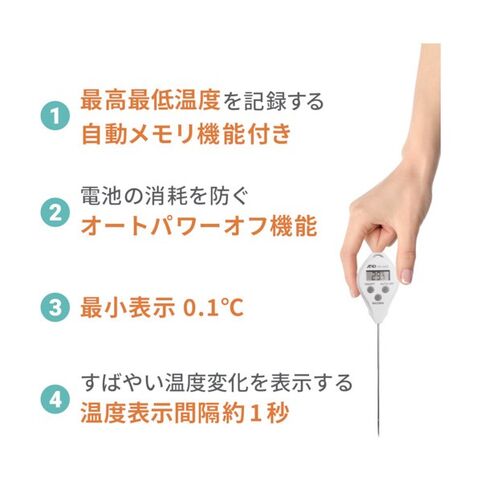 A&D 防水形コンパクト中心温度計白 241 x 92 x 21 mm AD5625 1点