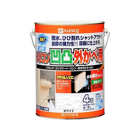 カンペハピオ 水性シリコン凹凸外かべ用 つやあり 4kg ホワイト ペンキ ペイント 壁 1缶