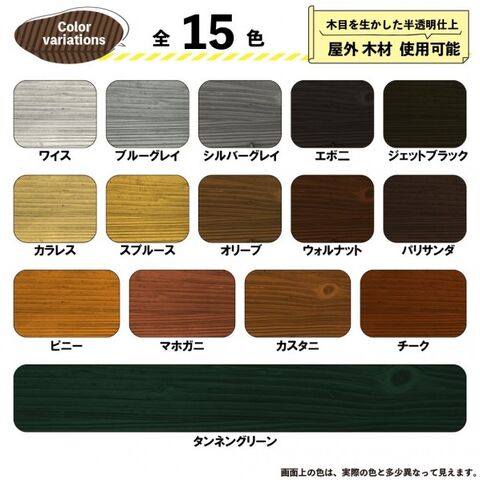 日光や風雨に強い耐候性料料効効果で明な色が長持ちし、長期間木材を保護します。