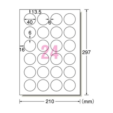 エーワン ラベルシールA4 24面 丸型 ●規格:A4判 (210×297mm)_x000D_ ●一片サイズ:40mmφ 64424 1p