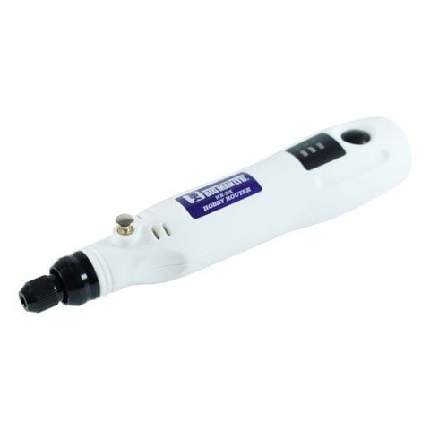 2.35mmチャックの充電式ホビールーター本体と先端ビット31点セット。USB端子で充電OK。3スピード切換機能付。リチウムイオンバッテリー内臓。 ※充電器は付属していません。 用途:一般彫刻、ガラス彫刻、彫金、アクセサリー工作、模型工作など 付属先端パーツ(先端ビット):●精密ドリル(0.5/0.8/1.0)/3種/金属・樹脂・木材の精密穴あけ※ドリル刃は非常に繊細です。決して、こじったり無理な力をかけないよう慎重に作業してください。