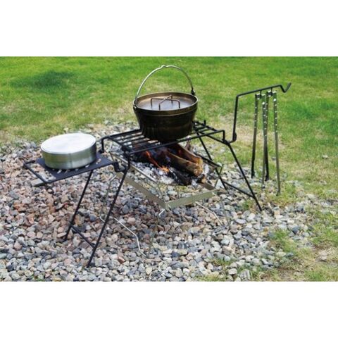 ●焚き火台に合わせて高さが変えられるアイアンスタンド。