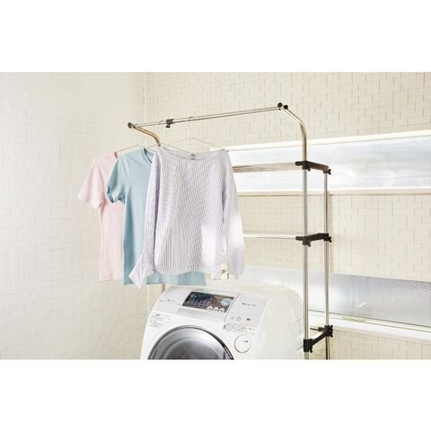 ベストコ 防水パンにも置ける ステンレス洗濯機ラック ハンガー掛付 61~97×56×181cm ブラウン NY- 235 1台