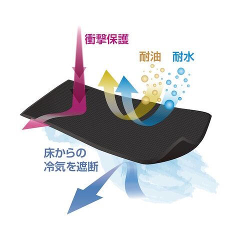 ●人肌程のクッション性が耐圧を分散し、足腰の疲労を軽減できるマットです。