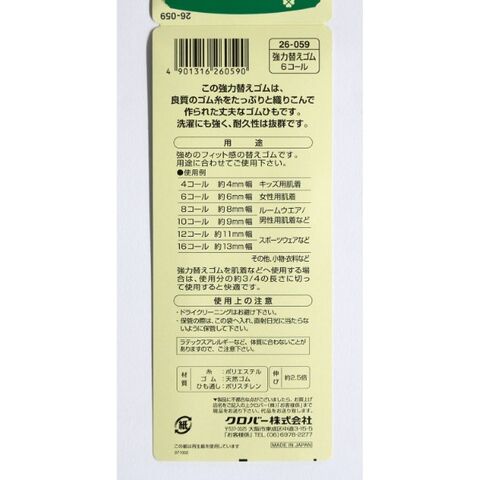 ●耐久性が高く高品質なクロバーのゴムひもです。