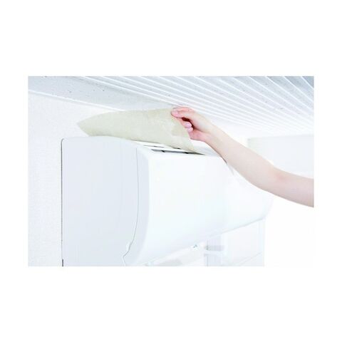 ●シールのように簡単に貼るだけでエアコンが空気洗浄機になります。
