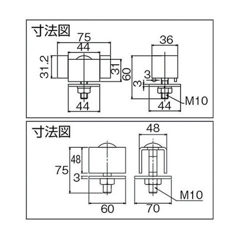 | 材質/仕上 | ●上板、下板:スチール ●ボルト:スチール ●戸当り部:ゴム(EPDM) |