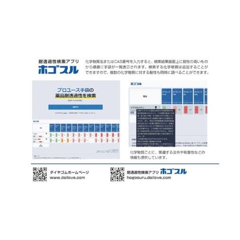 ●すべての有機溶剤に対応できる手袋ではありませんので、使用前に十分確認してからご使用ください。●手袋の使用方法や環境などにより耐透過性は変化します。●同一溶剤であっても手袋の使用方法・時間により手袋が変化する場合がありますので、注意してご使用ください。