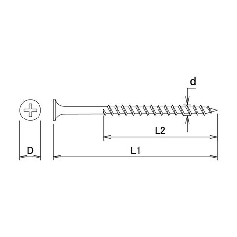 ネジ山の間隔が長く(粗目)ネジの溝が深い、電動工具を使って作業するもっとも一般的な木工用ビス。