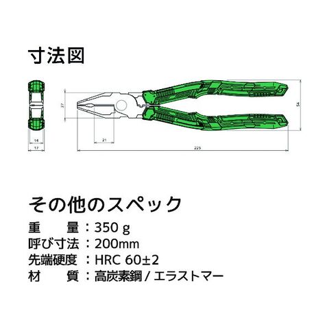 ●偏芯タイプ:従来のペンチより切断力30%アップしました。