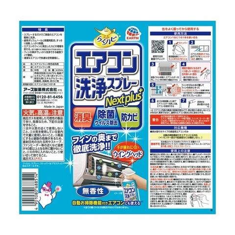 アース製薬 らくハピ エアコン洗浄スプレー Nextplus 無香性 688514 1点