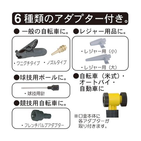 ●6種類のアダプターで自転車以外にも広い用途で使用できます。