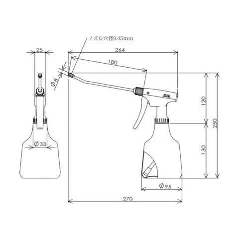 | 材質/仕上 | ●本体:ポリプロピレン(PP) ●容器:ポリエチレン(PE) ●ノズル:真鍮(クロムメッキ) |