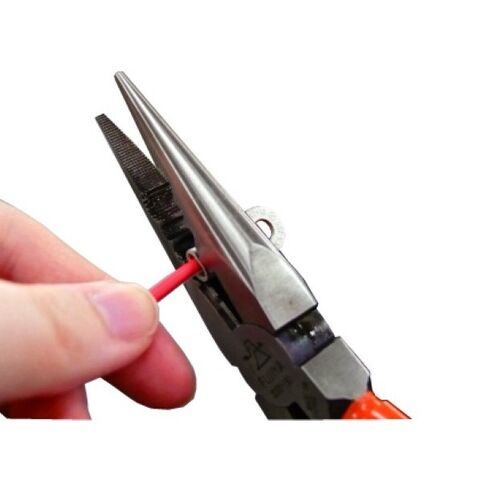 従来のラジオペンチの機能を損なわず、コードの割込み、簡易圧着、綿材の皮むき、小ネジやナット等をくわえ回すなど、幅広くご使用頂ける万能工具です。
