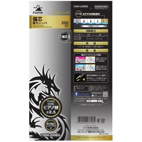 フジ矢(FUJIYA) 偏芯強力ニッパ 黒金 700N-200BG 1点