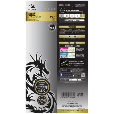 フジ矢(FUJIYA) 偏芯パワーペンチ 黒金 3000N-225BG 1点