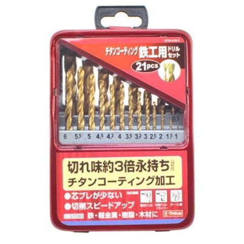E-Value チタンコーティング 鉄工ドリルセット ETD-21S-T 1セット