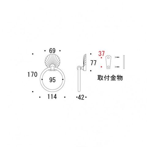 【SHELL】取付土台が貝殻の形になったリング型のタオル掛けです。リング部分が小さめなので狭いスペースにも取付できます。貝をモチーフにした真鍮色(ゴールド)タオルリング。取付土台が貝殻の形になったリング型のタオル掛けです。リング部分が小さめなので狭いスペースにも取付できます。【耐荷重】約3kg 耐荷重については取付の壁面の強度や使用状況によって異なります。あくまでも参考程度としてお考えください。ご家庭でのご使用場所は、洗面所、脱衣所でお使いください。