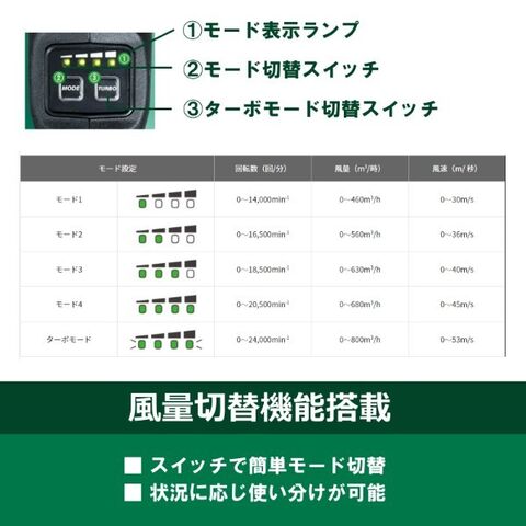 エンジンブロワに匹敵する大風量680m3/h(ターボモード時:800m3/h)