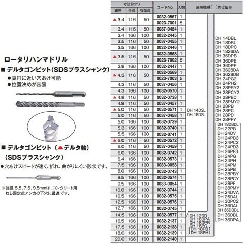 HiKOKI(旧日立工機) デルタゴンビット(SDSプラスシャンク) ロータリハンマドリル用 116×φ3.5 0037-0455 1個のレビュー
