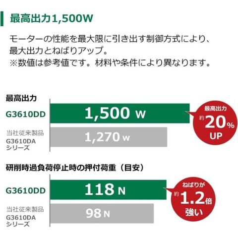 最大出力1500Wの高出力で重負荷作業でも止まりにくい!