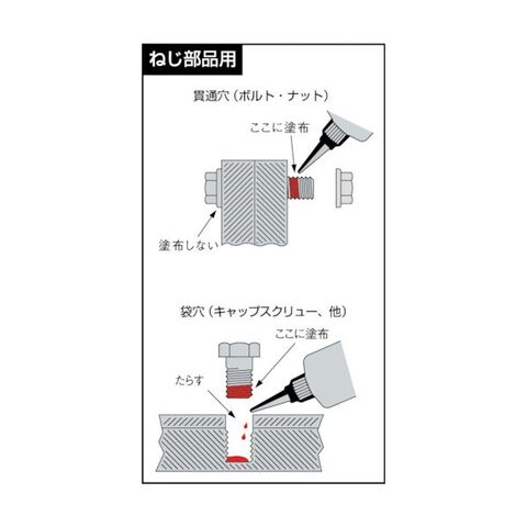 ●ねじや軸などの金属部品のすき間に入り空気が遮断されると硬化します。(空気にふれているときは硬化しません)