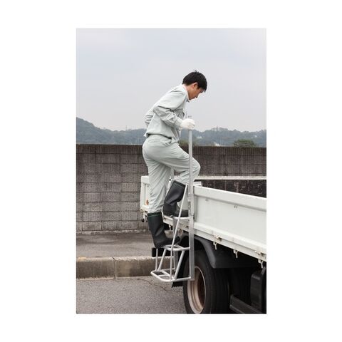 ●トラックのアオリや荷台にかけるだけで簡単にセットでき、荷台への昇降をスムーズに行えます。