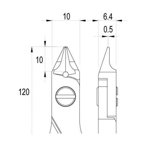 ・全長(mm):120・刃表面形状:フラッシュ刃・刃先(mm):10.0・切断能力(mm)中硬線:φ0.1~0.4・切断能力(mm)軟線:φ0.1~1.2・タイプ:先細リリーブ形