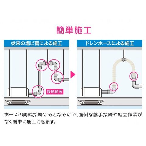 可とう性のある柔軟なホースのため、施工が簡単です。