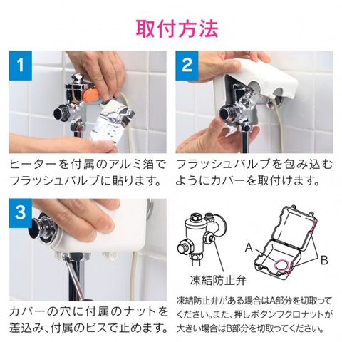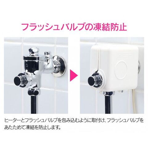 トイレの小便器用フラッシュバルブに取付け、フラッシュバルブが凍結し破損するのを防ぎます。