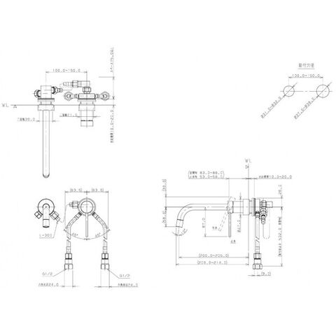 ●取付穴径:スパウト31~32mm、ハンドル/37~38mm