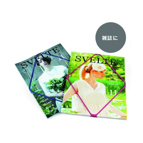 ●輪ゴムの4つの穴にファイルや本の四方の角をひっかけて使用します。