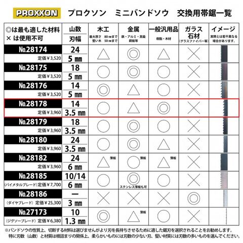 プロクソン/proxxon 交換用バンドソー鋸刃幅3.5mm周長1060mm14山(1本) 28178 電動のこぎり 替刃