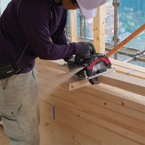 ●AC機並みのパワーで、スピーディーに切断ができる充電式集じん丸ノコです。