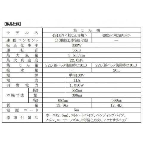 ●標準付属品:ポッキンプラグ付・ホース(2.5m/A-33532)・ストレートパイプ(192563-1)・ベンディングパイプ(192562-3)・ノズル(122512-4)・コーナーノズル(410306-2)・ポリ袋10枚入(A-32340)・アクセサリバッグ(A-46040)
