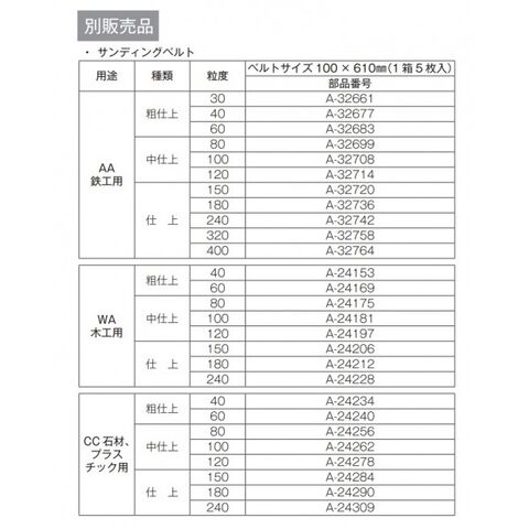 ●標準付属品:吸じん装置付・サンディングベルトA80・ダストバッグ
