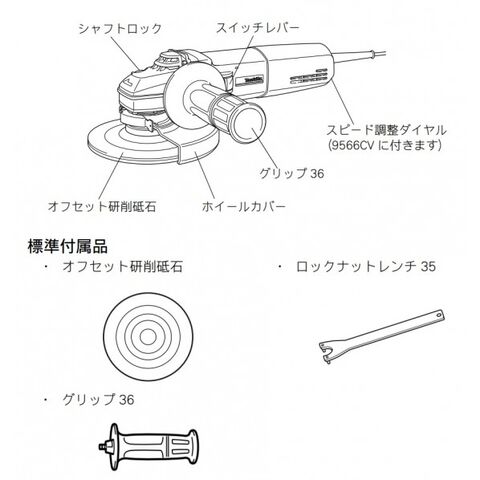 ●標準付属品:研削砥石36P・ロックナットレンチ35(782407-9)・サイドグリップ