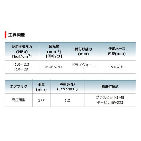 ●標準付属品:(+)ビット2-45・タービン油VG32