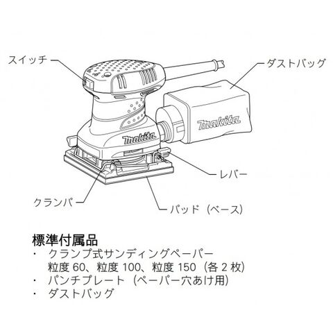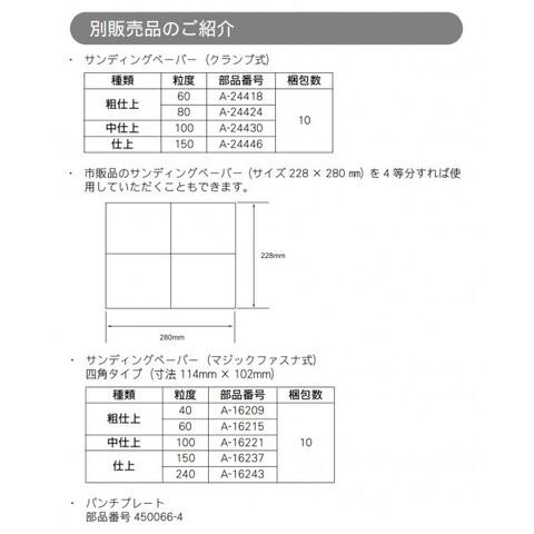 ●標準付属品:サンディングペーパー#60・#100・#150(各2枚)・パンチプレート・ダストバッグ
