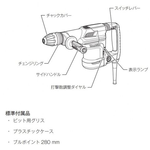 ●標準付属品:ケース付・ブルポイント280(SDSマックスシャンク)・ビット用グリス