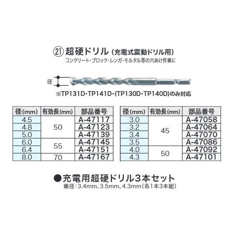 マキタ/makita 充電用超硬ドリル3.2 3.2mm A-47064