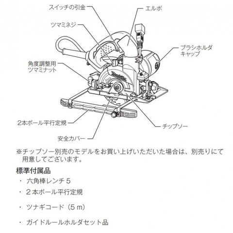 ●標準付属品:チップソー(A-50061)(チップソー付仕様のみ)・2本ポール平行定規・ガイドルールホルダ・六角棒スパナ5・(783203-8)・ツナギコード5m ※チップソー別売