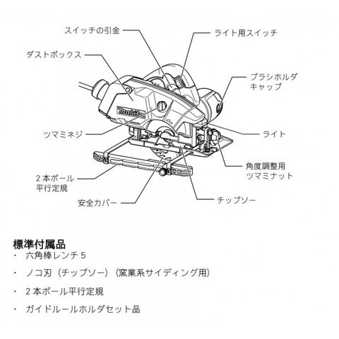 ●標準付属品:チップソー付・チップソー(A-50083)(チップソー付仕様のみ)・2本ポール平行定規・ガイドルールホルダ・六角棒スパナ5・(783203-8)