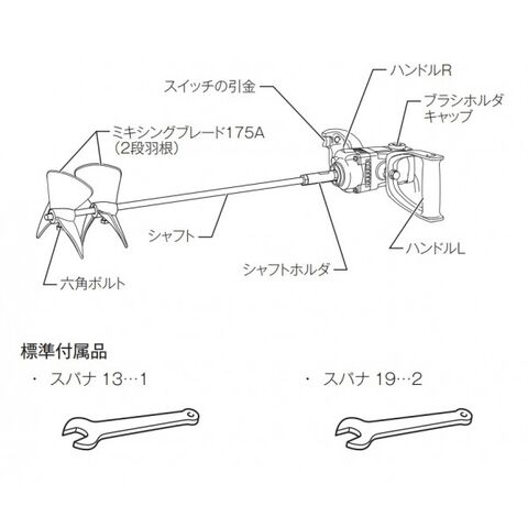 ●標準付属品:ミキシングブレード175×2・スパナ13、19(各1本)