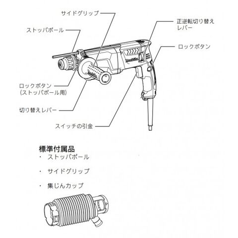 ●標準付属品:ケース付・ストッパポール・サイドグリップ・集じんカップ ※ビット別売