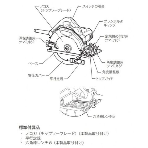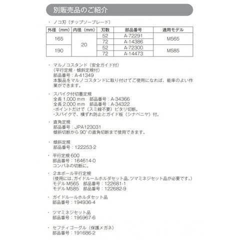 | 付属品 | ノコ刃(チップソーブレード)、平行定規、六角棒レンチ5 | 入数 | 1台 |