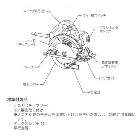 ●標準付属品:52T・チップソー(A-52227)・ボックスレンチ10(782223-9)・平行定規 ※ノコ刃別売