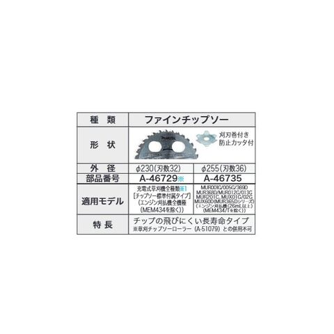 マキタ/makita 巻付防止カッタ付チップソ255 A-46735