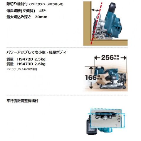 マキタ(makita) 125ミリ充電式マルノコ(本体のみ)(バッテリ・充電器・ケース別売) JPAHS473DZ 1台
